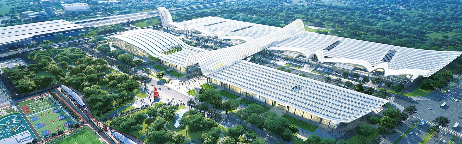 項目位于崇德十大道以東,站前廣場以南,總投資約6.4億元,占地面積約100畝,總建筑面積6.7萬平。該項目依托德州市區(qū)位優(yōu)勢,集會議、展覽、餐飲、商務(wù)、旅游等多種功能于一體的大型會展綜合體,用于服務(wù)德州及周邊區(qū)域會議、展覽等需求。